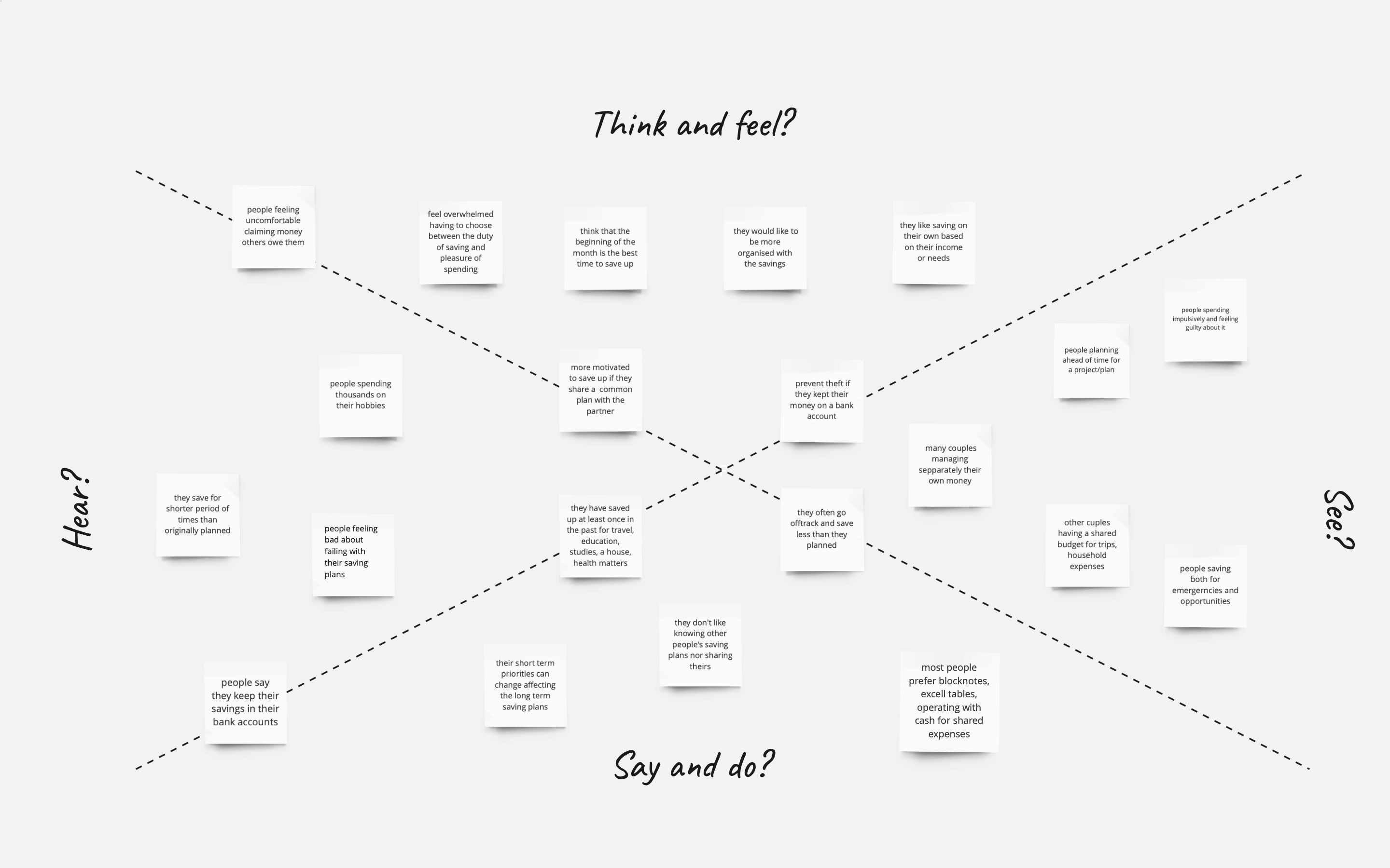 All the information resulted from the surveys and the interviews was gathered on the empathy map.