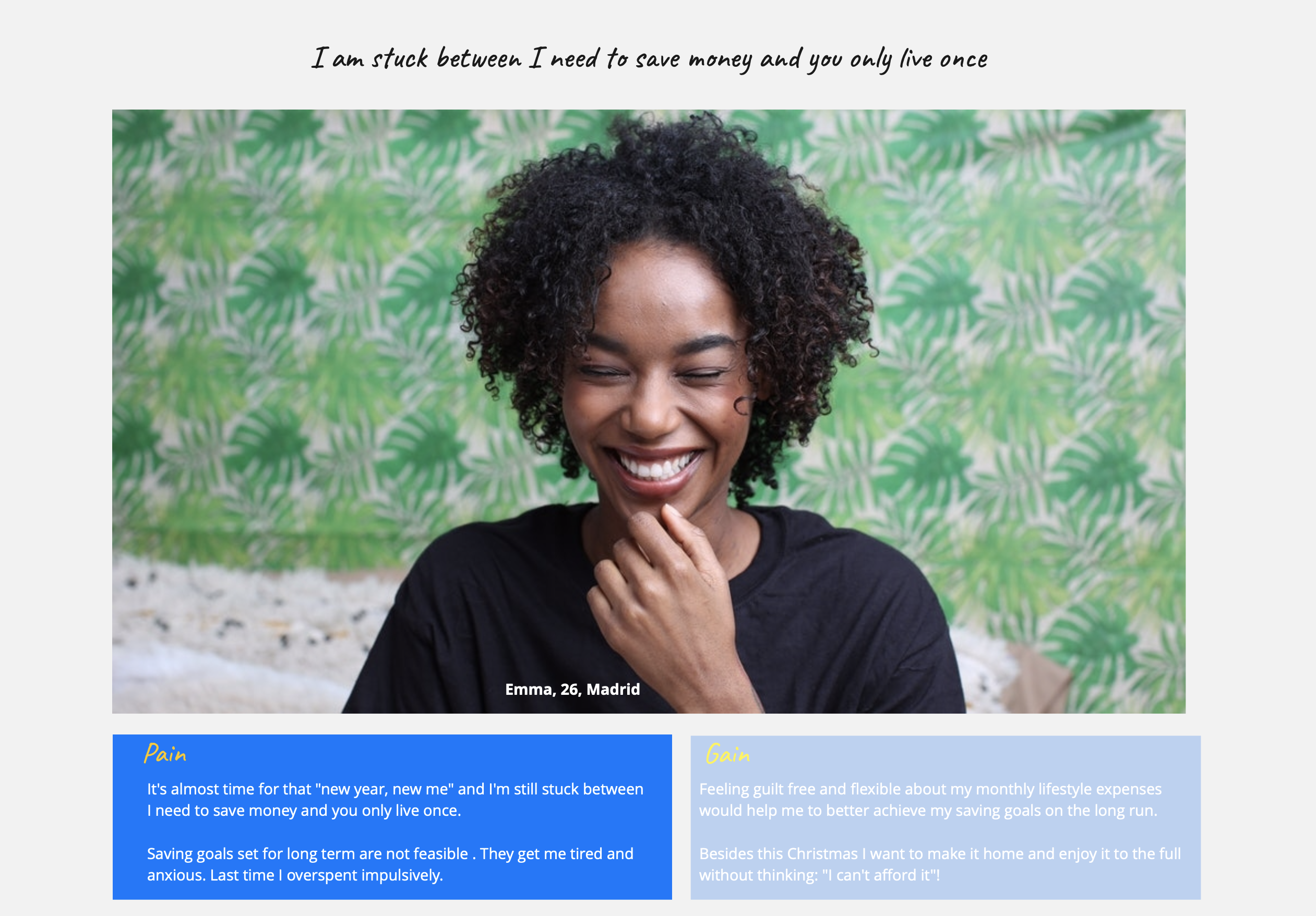Before jumping into design ask first. Research was based on surveys, interviews and online research about money and how do we make our financial decisions.