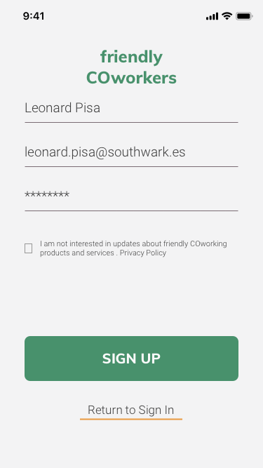friendly COworkers is a safe, fast and practcial digital solution for work addicts, travelling workers, new starters and expats who experience anxiety when thinking about approaching someone on the hallway, in the elevator or in the communal kitchen.