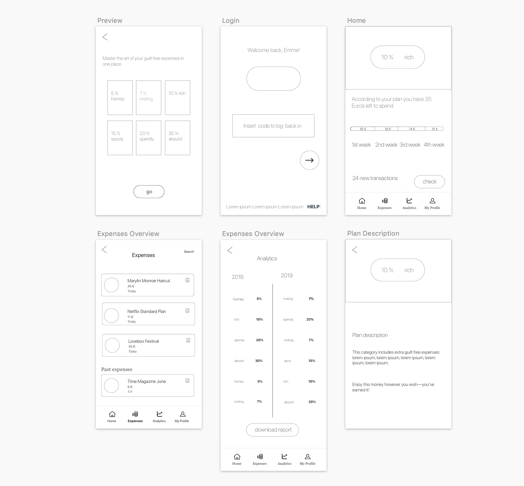I started with a low-fi version in order to define the basics. Based on the results following the user testing I built the mid-fidelity wireframes.